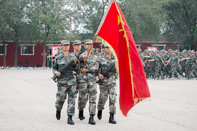 伴随着雄壮的国歌,全场起立脱帽,鲜艳的五星红旗冉冉升起,军训阅兵式正式开始。李主任的一声声问候,似春风化雨,滋润每个新生的心田。同学们个个精神饱满,气宇轩昂,口号嘹亮。