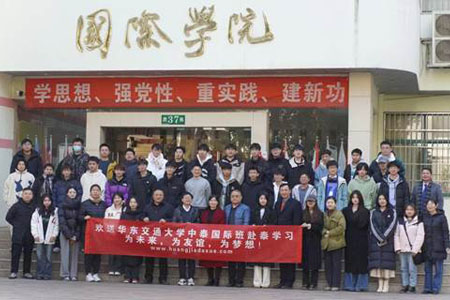 2023年12月25日上午,我校与泰国皇家园大学在国际学院举行了2023级中泰国际班行前教育暨欢送会。国际合作交流处处长唐斌、国际学院党委书记李雪峰、泰国皇家园大学副校长李涛出席。