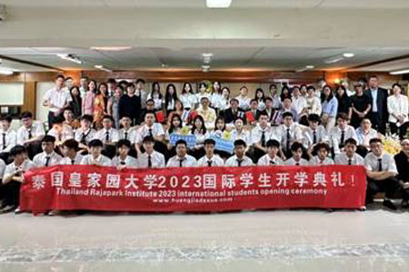2024年1月11日,国际学院23级中泰国际班新生,在泰国皇家园大学参加了新生开学典礼,泰国皇家园大学校长Charoen-rajapark、中国教育部中外语言合作交流中心曼谷中心主任赵燕清、皇家园大学国际事务委员会主席李涛等多位领导出席。