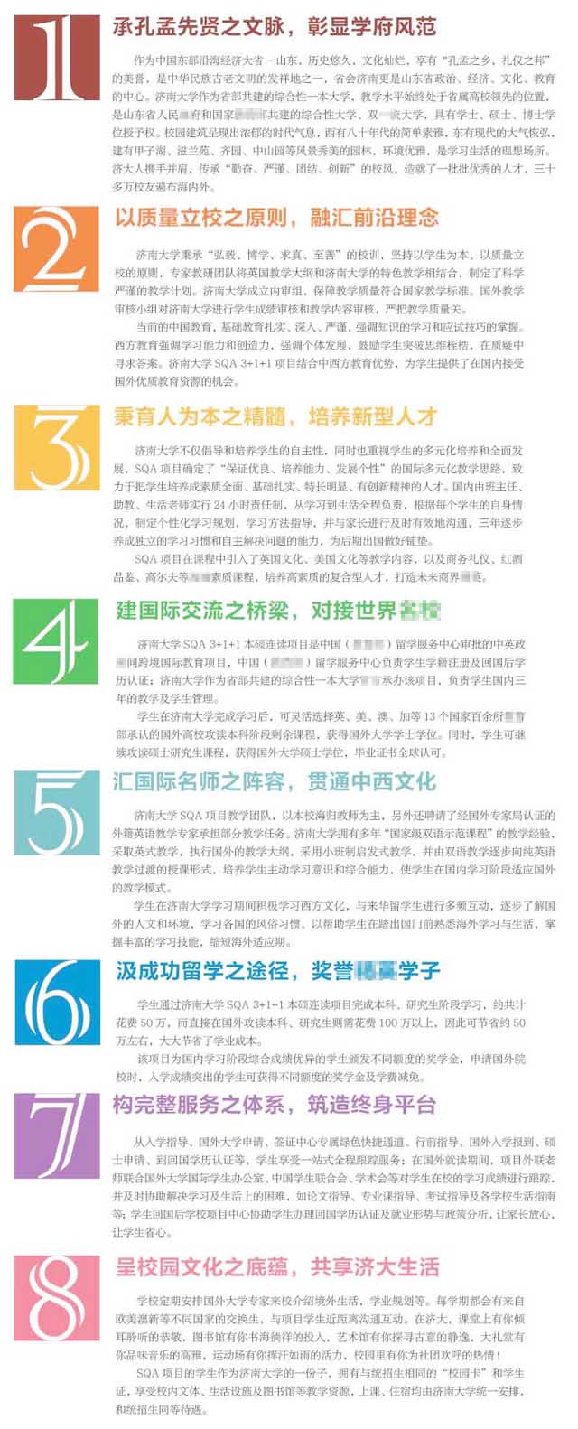 2003年,中国(教育*)留学服务中心(CSCSE)与苏格兰学历管理委员会(SQA)共同将SQA3+1+1本硕连读项目引入中国,联合培养本科、硕士层次的国际英才。通过在济南大学三年全日制学习,具备熟练的英语应用技能,并掌握一定的相关专业理论知识,选择英、美、澳、加、荷等13个国家的100余所大学继续学习,*短1年即可获得国内外认可的本科学士学位,并可直读1年制硕士课程。