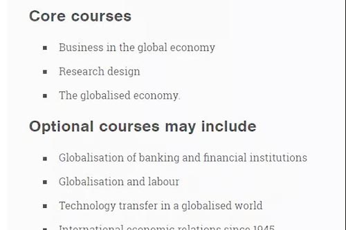 比如格拉斯哥大学的MSc Global Economy,看过课程设置的同窗们就会晓畅这是一门看重经济理论研究的课程,并没有放太多重心在商科领域(这门课程也并没有开设在商学院)。