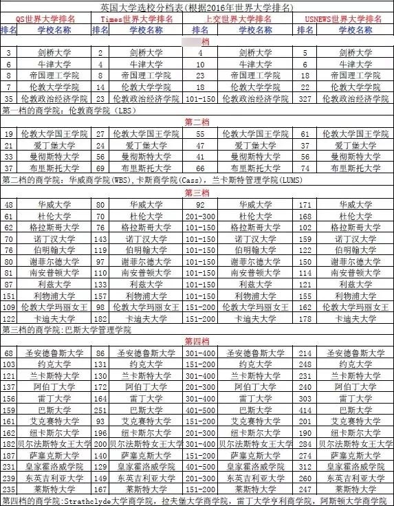 英国大学选校分档表: