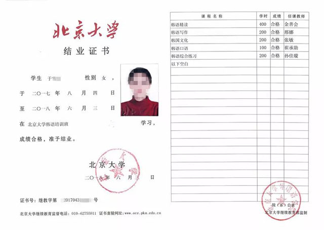 北京大学语言培训班学生统一在北京大学本校区外国语学院教学楼上课,学生拥有北大饭卡、图书卡、出入证,可以参与北大的社团活动,聆听各种名师讲座,享受国内一*高等学府的文化氛围。结业考试通过后将获得北大结业证,可申请北京大学校友卡,※今年是北京大学120周年校庆,参加北大*13届韩语培训班的同学们,可以办北京大学校友卡,可以与李克强总理成校友哦~~