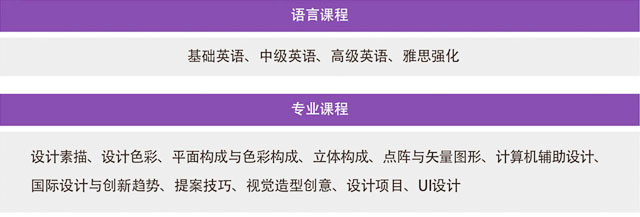 学生在华南师范大学学习两年,语言课程由国际商学院语言与通识教育中心师资授课,视觉传达设计专业核心课程由软件学院师资授课。学生完成在国内修读的课程学分,可获国外合作大学豁免学分(不超过本科总学分数量的1/3)。雅思成绩达到外方大学要求后,学生可申请赴澳大利亚科廷大学、英国德蒙福特大学、英国哈德斯菲尔德大学继续学习两年,完成学业后获颁国外大学本科学位。学生还可以在此基础上申请继续攻读硕士学位。