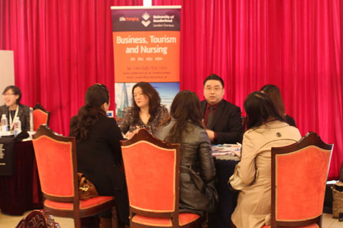 现场有18个来自英国、美国、马来西亚等国的院校及教育机构