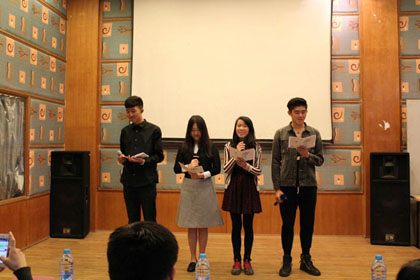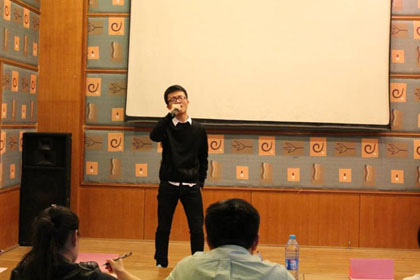接下来是A Level2015秋季3班的陈晓飞演唱的《K歌之王》,与开场舞的激情截然相反,他的声音深情安静,具有穿透力。同样深入人心的还有A Level 2015秋季3班的纪兆中和钱少卿带来的《红日》,虽然有略微的紧张,但还是非常棒,博得满堂喝彩。以及2014秋季3班的柳群演唱的《回头太难》,一样获得好评。