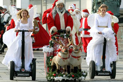 1 圣诞天使,圣诞老人骑赛格威2011年11月3日,在柏林。圣诞老人的学生要在即将到来的圣诞节圣诞老人或圣诞天使打开他的工作机构。