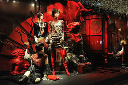 6圣诞商店橱窗里展出期间推出2011年11月9日,在巴黎的Le Printemps的圣诞节灯饰 。