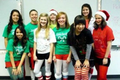 留学生与同班同学合影庆祝圣诞节的到来