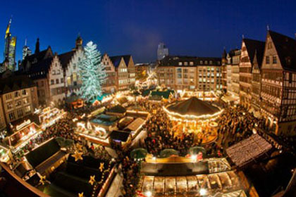 8 德国法兰克福灯火一片辉煌,城内人山人海。