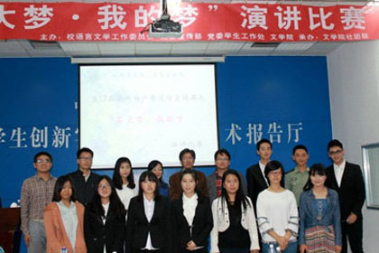 近日,由校语言文字工作委员会、党委宣传部、党委学生工作处、文学院主办,文学院社团联承办的“石大梦,我的梦”演讲比赛决赛在大学生活动中心二楼举行。来自出国留学培训基地2014级英语区“2+2”本科留学班的张帅鹏同学作为校大学生主持团成员主持了本次比赛。