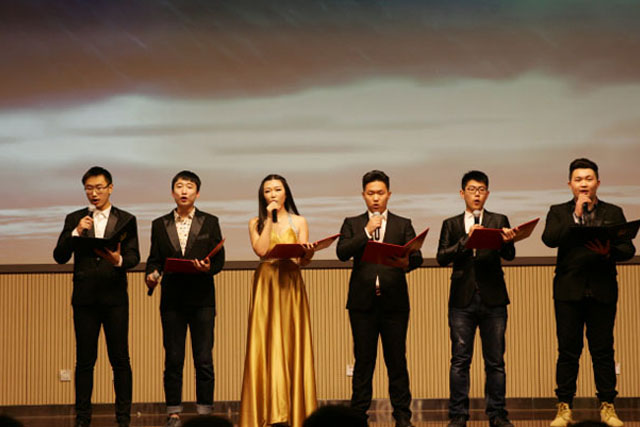 12月29日,出国留学培训基地2016新年晚会在培训楼多功能厅成功举行。教育发展中心党委书记赵东冶,教育发展中心副主任、继续教育学院院长马国刚等学院领导和老师代表莅临晚会现场,与300名师生一起观看文艺演出。