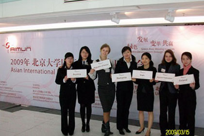 应北京大学国际模拟联合国大会(AIMUN)执行委员会邀请,3月12日—15日教育发展中心2007级英语区“3+2”联合培养班学生慕页与我校其他7名学生代表学校参加了2009北京大学国际模拟联合国大会,慕页同学在AIMUN—联合国儿童基金会中代表罗马尼亚出席会议。