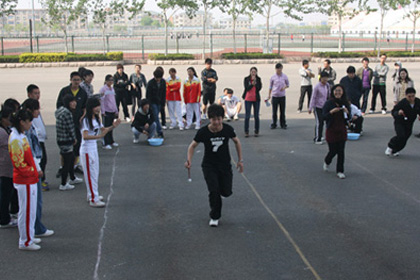 本次趣味运动会包括"集体穿越"、"丛林奔跑"、"巧走梅花桩"、"踩气球"、"抱抱团"等五个项目,经过激烈角逐,2010级俄语留学预科班取得了团体项目冠军,田甜、毛歆慧等同学获得了个人项目冠军。