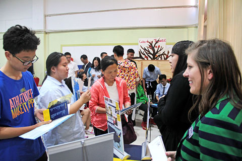 近期我校举办了一场隆重的美国大学招生官见面会,邀请了与我校合作的十所美国著名大学(如美国塔夫茨大学等)的招生官及招生主任来到力迈中美,代表们在现场与学生及家长们面对面,就美国大学的招生和录取等问题进行深入的交流和互动,并且还来到我校的力迈书画苑,感受文房四宝的墨香,品味中国文化的魅力。在这里,他们不仅是高校的招生官,还是被书法之魂所深深吸引的外国友人。