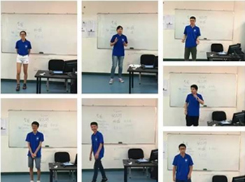 上图:同学们在课堂上做英文自我介绍,展示自己的才艺;同学们真是多才多艺,有的能歌善舞;有的书法卓然;有的绘画技巧纯熟!
