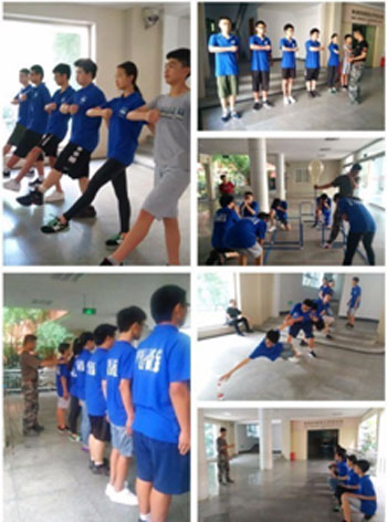 上图:每天早上8点到11点的军训拓展训练,天气虽然炎热,但是同学们都能坚持下来,并且乐在其中!