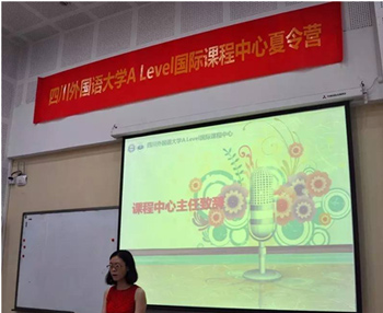图一:川外A Level国际课程中心主任陈姣老师致辞,总结了同学们在这一周中成长和收获的点滴。