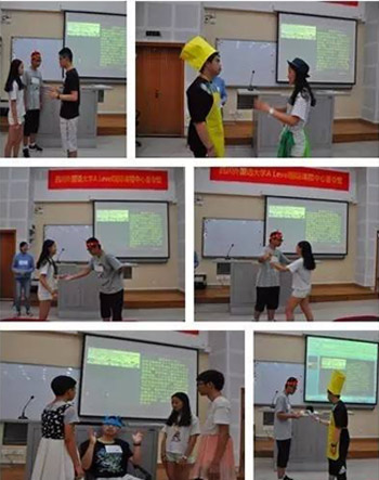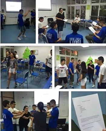 上图:外教老师在教同学们戏剧表演课,每个环节都可以帮助同学们联系不同的戏剧表达才能,例如:肢体语言、语音语调、面部表情等等,课堂生动有趣,时不时传来同学们爽朗的笑声。