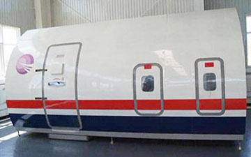 主要功能是培训机组人员在飞机发生火警情况下,正确掌握机载灭瓶的使用方法,熟练掌握紧急情况下的灭火技能。灭火训练舱尺寸为:长11米.宽3.8米.高2.8米。
